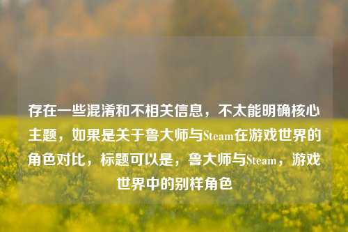 存在一些混淆,鲁***是一款硬件检测工具,主要用于电脑硬件信息查看等,与游戏相关但并非游戏角色,Steam是全球知名的游戏平台,而“鲁***在线高清免费版电视剧爱奇艺”表述也不准确,鲁***不是电视剧。,鲁***作为硬件检测工具在电脑领域有其独特作用,Steam则是游戏界重要平台,二者在游戏世界扮演着不同角色,鲁***助力玩家了解电脑硬件状况以便更好游戏,Steam为玩家提供海量游戏资源,但内容中“鲁***在线高清免费版电视剧爱奇艺”的说法存在错误关联,鲁***与电视剧并无此关系,应避免这种混淆认知。