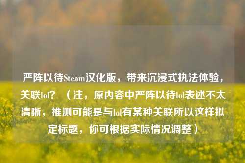 在游戏的世界里,有一款备受瞩目的作品——严阵以待,而它的Steam汉化版更是为广大玩家开启了一扇全新的大门,带来了独特而精彩的游戏体验。