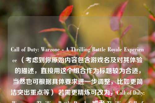 《使命召唤:战区》(Call of Duty: Warzone)带来了一场***的多人在线战术竞技体验,作为大受欢迎的《使命召唤》系列衍生的免费之一人称射击游戏,它具有丰富的地图、多样的武器装备和多种战术策略,玩家能在广阔场景中展开激烈战斗,与众多对手角逐生存,游戏融合了该系列的经典元素,同时以独特的战斗模式吸引玩家投身紧张***的战斗,不断为玩家带来心跳加速、热血沸腾的对战时刻,成为了玩家享受竞技乐趣的热门游戏选择。