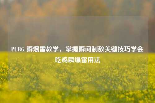 该内容聚焦于PUBG瞬爆雷教学,旨在帮助玩家掌握瞬间制敌的关键技巧,详细介绍了吃鸡瞬爆雷的使用 *** ,这对于玩家在游戏中提升战斗能力至关重要,通过学习此教学,玩家有望在复杂激烈的游戏场景中,精准运用瞬爆雷,把握瞬间时机,对敌人造成有效打击,增加在PUBG游戏中成功吃鸡的概率,提升游戏体验与竞技水平,从而更好地在游戏世界中展现实力,实现制敌并取得最终胜利。