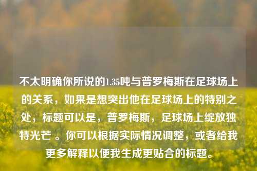 似乎不太完整且逻辑不太清晰,仅“普罗梅斯,足球场上的独特光芒普罗梅斯1.35吨”这样的表述难以准确理解其完整含义,请补充更详细准确的关于普罗梅斯在足球方面的具体表现、相关事件等信息,以便我能为你生成合理准确的摘要,清晰阐述普罗梅斯在足球领域展现出独特光芒的具体情况及与之相关的关键要点。